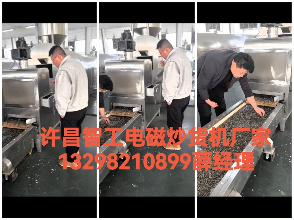 2月7日,大年初十,開工第二天,內(nèi)蒙巴彥淖爾客戶來廠試機(jī)8米流水線設(shè)備炒制原味瓜子。