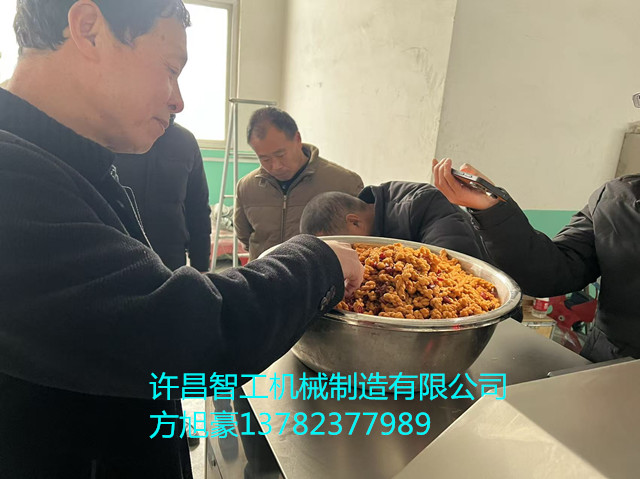 2025年12月23日,河南滑縣客戶帶小麻花來(lái)廠試機(jī)電磁炒貨機(jī)炒制。
